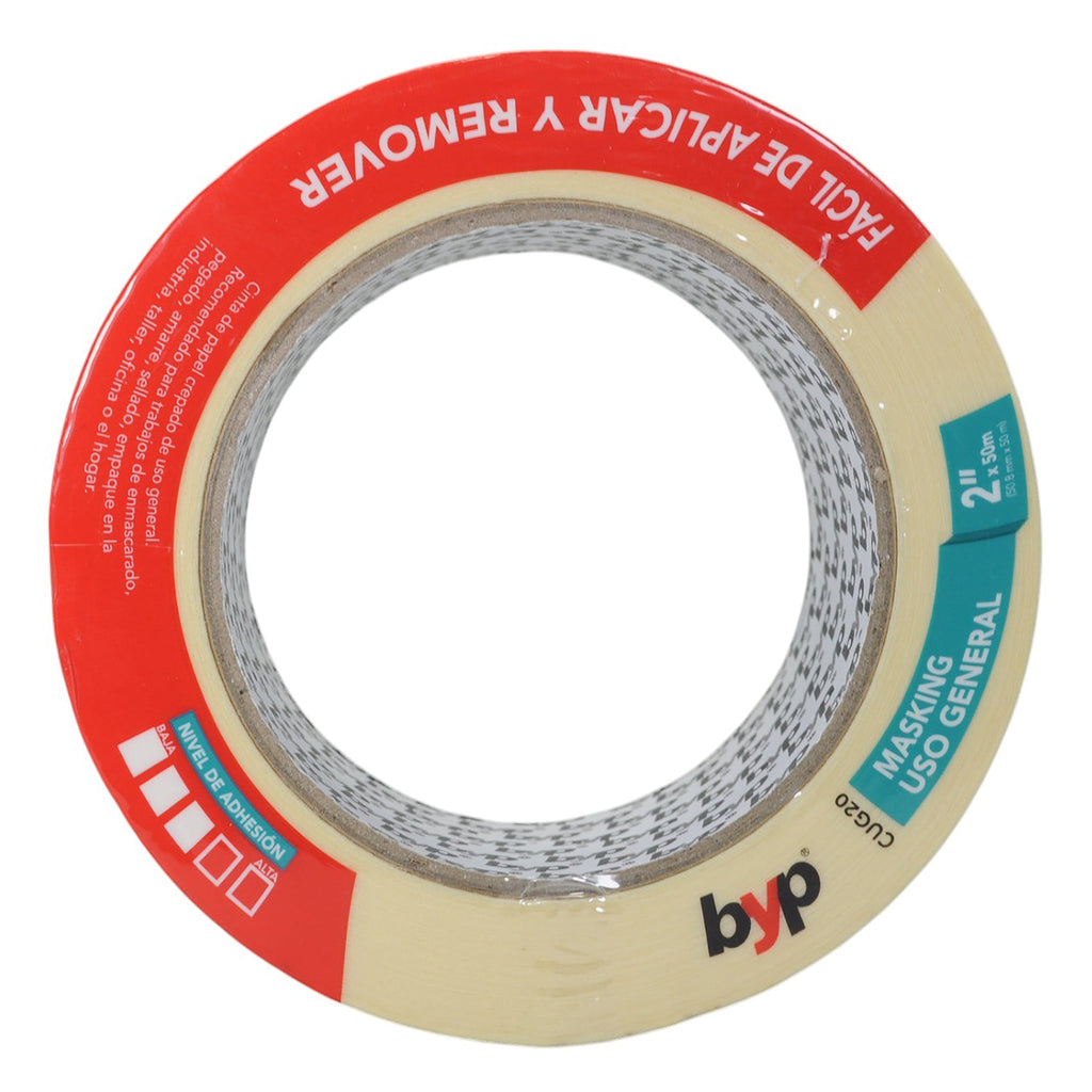 Cinta BYP uso general 2" x 50 m, fuerte adherencia para múltiples superficies. ¡Y lo encuentras en La nueva eléctrica!
