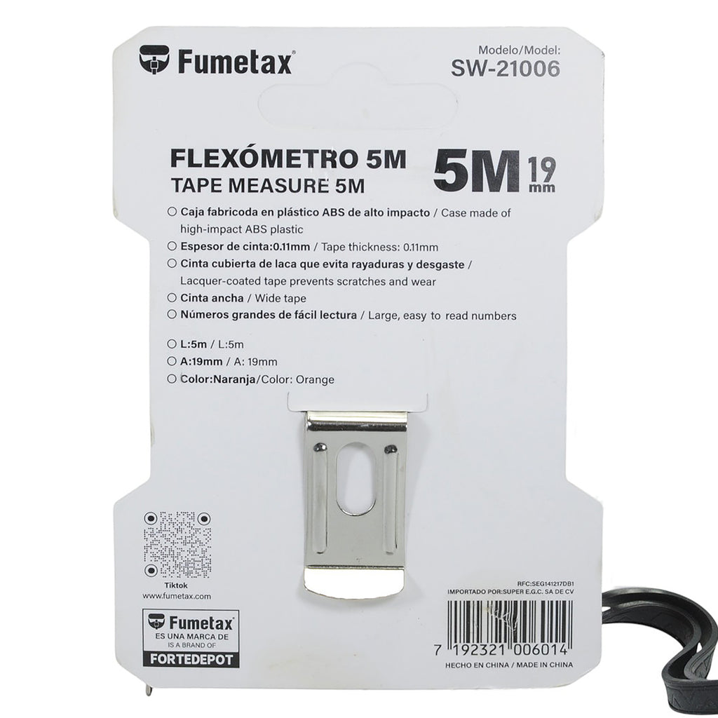 FLEXOMETRO FUMETAX 5MTS NARANJA
