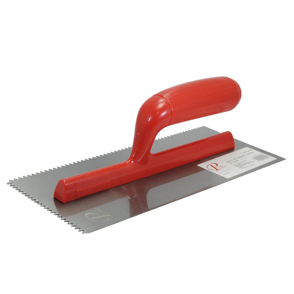 Llana Pinmarkt con canto dentado triangular, ideal para aplicar adhesivo en cerámica o azulejo. ¡Y lo encuentras en La nueva eléctrica!